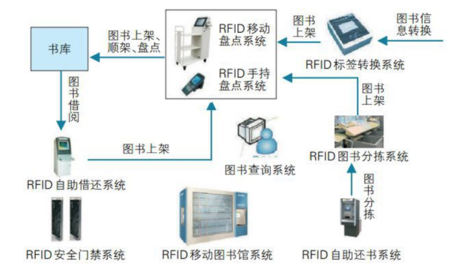 RFID高頻借書證是智能圖書館的核心所在,使用讀寫設備,搭載著軟件管理系統和龐大的數據庫,實現自助借閱、盤點、上架、檢索、防盜等功能